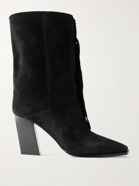 EXCLUSIVE AT NET-A-PORTER. From the Cuban heels to the fringed trims, there's a distinct Western feel to Jimmy Choo's 'Hart' boots. They've been made in Italy from supple suede and have elongated square toes. Wear yours with a floaty mini dress.