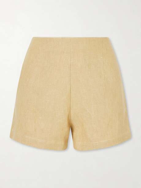 Founded in 1918 in France, Le Kasha redefines wardrobe essentials through natural textiles and ease of movement. The 'Ezbet' shorts are cut from organic Italian linen in a high-rise, softly tailored silhouette with a clean flat front; wear them with a light shirt on warm days.