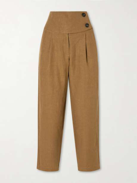 LE KASHA Dafash high-rise pleated linen straight-leg pants