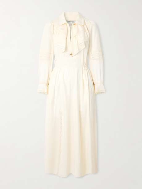 MAISON MAYLE's 'Joeldi' dress is the kind you'd only dream of finding antique. It's made from silk crepe de chine with a silk-charmeuse skirt and French cotton-lace trims. The generous cut and romantic ruffles drape beautifully.