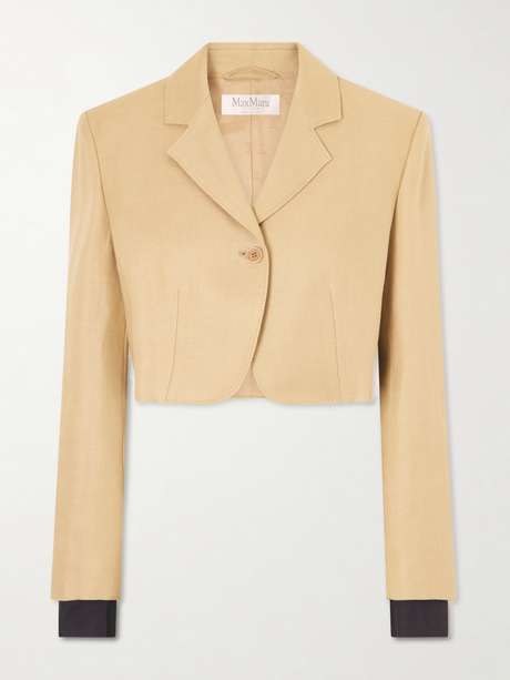 Max Mara updates its signature tailored blazers in a cropped length. Made in Italy from linen twill, it's single-breasted, fastened with a single button, and is finished with contrasting black extended cuffs. Reference the SS26 runway and style it with the matching skirt.