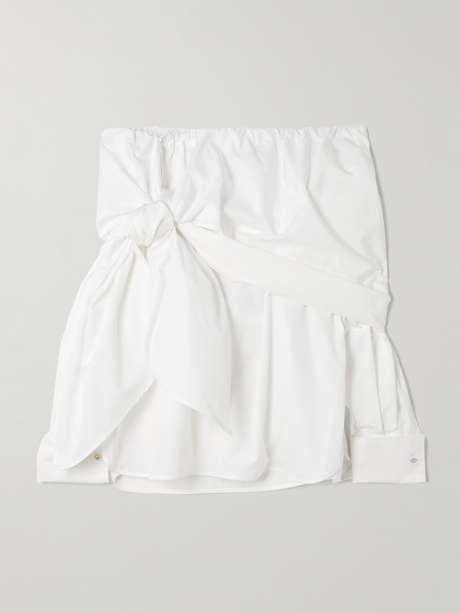 Max Mara's blouse is artfully gathered and folded at the neckline, so it falls off the shoulders and showcases your collarbones. It's tailored from crisp cotton-poplin with a knotted bow at the side.