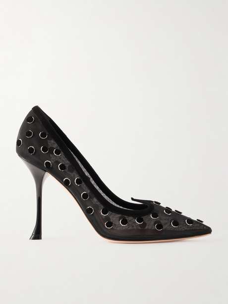 Imbued with a sense of romance, Roger Vivier's 'I Love Vivier' pumps have pointed vamps that resemble the outline of a heart. They've been crafted in Italy from polka-dot flocked mesh with suede trims and artfully curved stiletto heels.