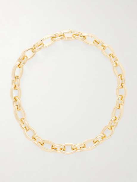 Chunky modernist links earn Roxanne Assoulin's necklace its 'Puffy' namesake. Shaped from gold-tone metal and buffed to a high shine, it's studded with a single glinting cubic zirconia stone. Make it your own with the brand's charms and pendants.