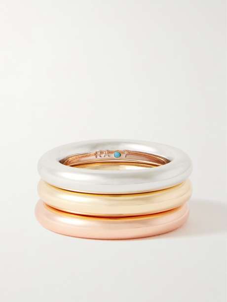 ROXANNE ASSOULIN The Tubular set of three gold-, rose gold- and silver-tone rings