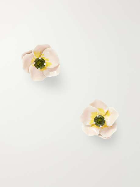 SIMONE ROCHA Blooming Poppy silver-tone, crystal and enamel earrings