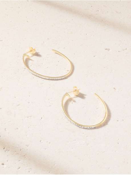 STONE AND STRAND Rhodium-plated 10-karat gold diamond hoop earrings