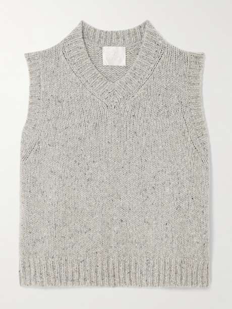 If you like to play with proportion, you'll love Suzie Kondi's sweater vest – it has a slightly loose fit with a high V-neckline. Finished with ribbed trims, it's been made in New York from pure cashmere in a light-gray mélange. Layer yours with an oversized shirt.