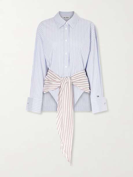 THE ATTICO Belted striped cotton-poplin mini dress