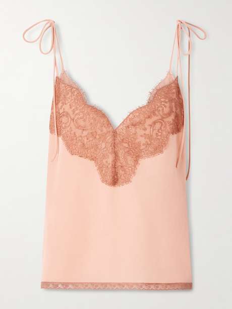 VALENTINO GARAVANI Lace-trimmed silk crepe de chine camisole