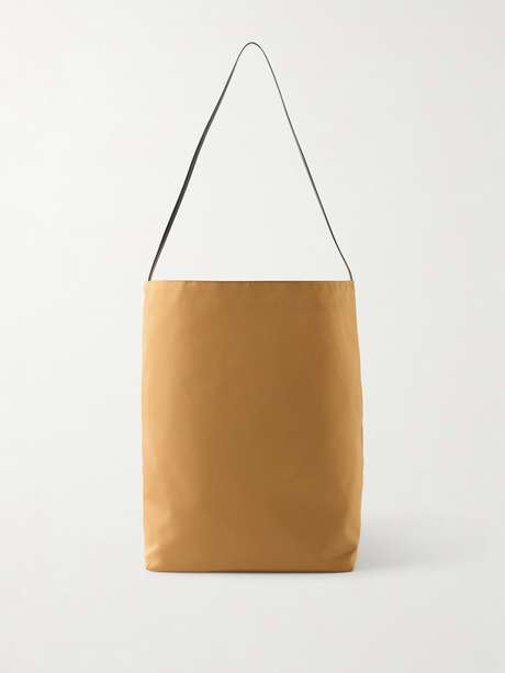 VALESQUE Bucket leather-trimmed satin-shell tote bag