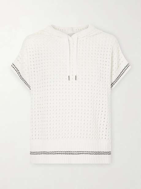 Varley reworks the classic hoodie silhouette in its 'Vittoria' style through open-knit cotton construction. Knitted from cotton, it's finished with contrasting black stripes along the hem and open sleeves.
