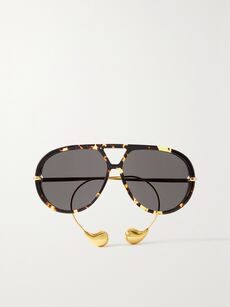 BOTTEGA VENETA EYEWEAREmbellished aviator-style tortoiseshell recycled-acetate and gold-tone sunglasses