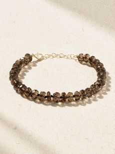 While long, swinging strings of layered beads tend to remind us of summer styling, the FW25 runways were championing single strings of jumbo, supersized beads that felt distinctly fresh for the season ahead. “Major maisons such as Ralph Lauren and Saint Laurent have brought beaded necklaces with bold energy firmly back to the fore, while others crafted balloon-sized pearls blown up to surreal proportions,” says Johnston. This trend is definitely one for the maximalists out there. “Carolina Bucci has interpreted the trend deftly with her rhodonite and quartz beaded necklace, which feels worthy of Betty Flintstone. It’s impossible not to smile at its oversized orbs,” she adds. Irene Neuwirth has also taken lapis lazuli as her muse with a graduated bead necklace that will liven up a classic white shirt, while Ananya’s cult Chakra bracelets are available in myriad natural hardstones with glittering diamond bars – the turquoise style will suit all skin tones.