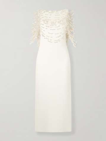 Meri cape-effect open-back embellished knitted midi dress