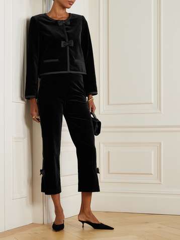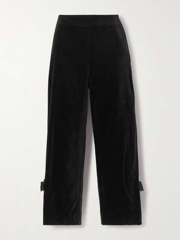 Quincy cropped bow-detailed satin-trimmed cotton-velvet slim-leg pants