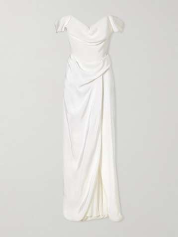 Nova Cocotte off-the-shoulder draped silk-crepe gown