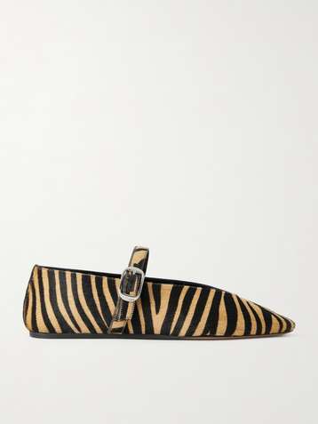 Criss Cross patent-leather trimmed zebra-print calf hair ballet flats