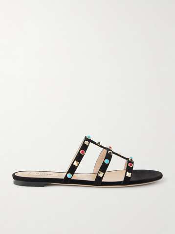 Rockstud bead-embellished suede sandals