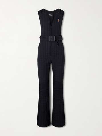 Belted appliquéd quilted down ski suit