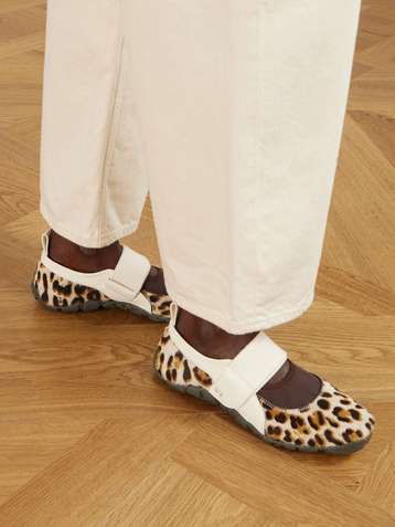 Jewel leather-trimmed leopard-print calf hair Mary Jane sneakers