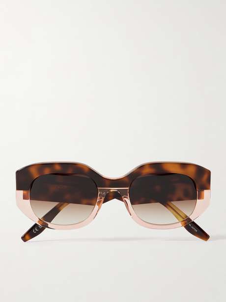 Barton Perreira's sunglasses are carefully crafted over weeks, ensuring quality and precision. Inspired by '60s styles, this 'Sueno' pair is made from tortoiseshell and pink acetate with rounded frames and gradient lenses.