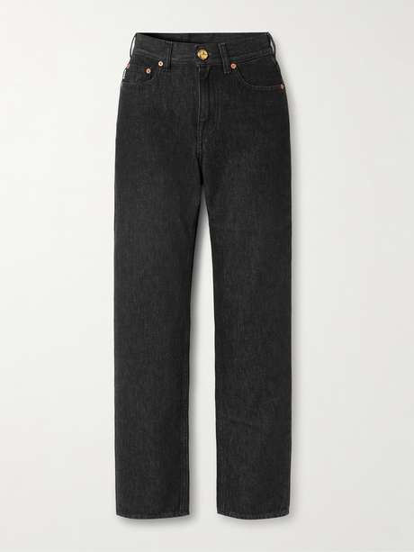 BLAZÉ Milano's 'Clapotis Paso' jeans are a super chic take on the style. Made from black denim, they have straight legs and an ornate gold-tone button fastening. The leather patch at the back is embossed with the label's signature seahorses.