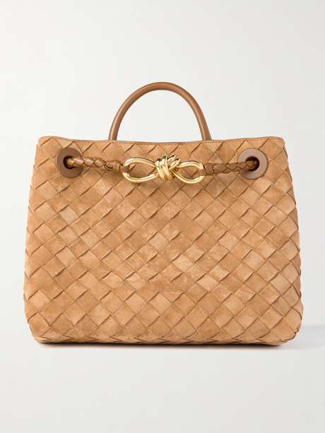 Bottega Veneta's small 'Andiamo' tote is made from strips of velvety suede that are woven using the label's intrecciato technique, an enduring marker of quality and heritage. It's threaded with a long braided strap featuring the gold-tone 'Knot' hardware and has enough space inside for your wallet, sunglasses case and makeup pouch.