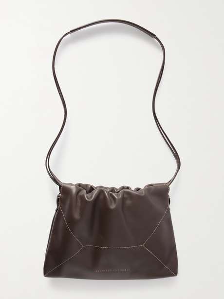 Brunello Cucinelli's bag has been made in Italy from soft leather that enhances the slouchy shape. It's stamped with a subtle logo and threaded with drawstrings that double up as shoulder straps. The sides are subtly embellished with signature Monili beads.