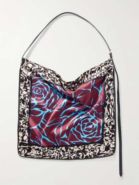 DRIES VAN NOTEN Leather-trimmed printed satin tote