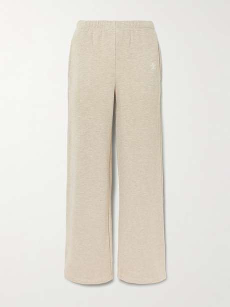 ÉTERNE Embroidered French cotton-blend terry wide-leg sweatpants