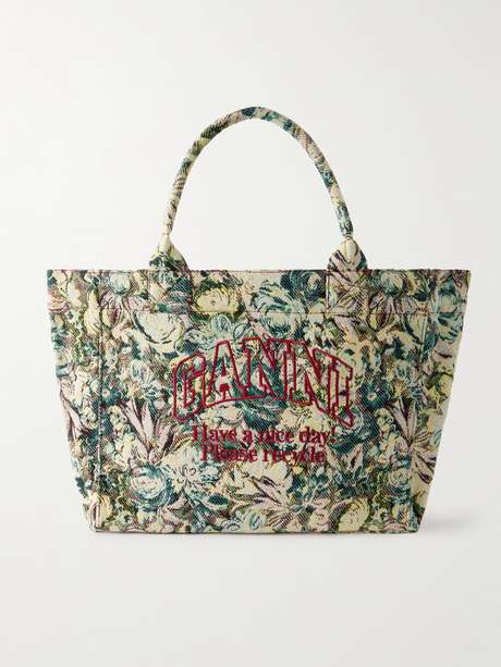 GANNI's 'Shopper XXL' tote is made from jacquard that's woven with a beautiful array of tapestry-inspired florals. It's embroidered with the label's logo and signature motto "Have a nice day! Please recycle", and offers ample space inside for your laptop, current read and wallet. Reverse between sides to change up the look.