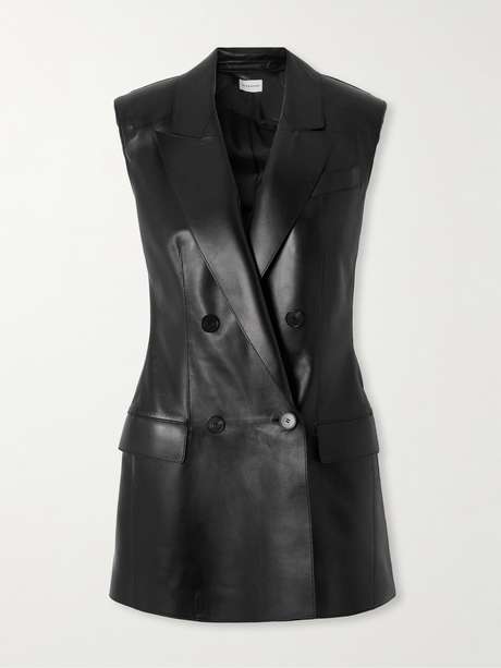"I want to address everything about modern women," says Creative Director Sarah Burton on her debut collection for Givenchy. "Strength, vulnerability, emotional intelligence, feeling powerful or very sexy. All of it." Worn on the Fall '25 runway, this sleeveless jacket is made from smooth leather with padded shoulders and wide peak lapels and is darted through the middle to draw in the waist. Style yours with the matching pants from our edit.