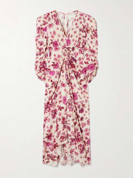 ISABEL MARANT Albini gathered printed silk-blend midi dress