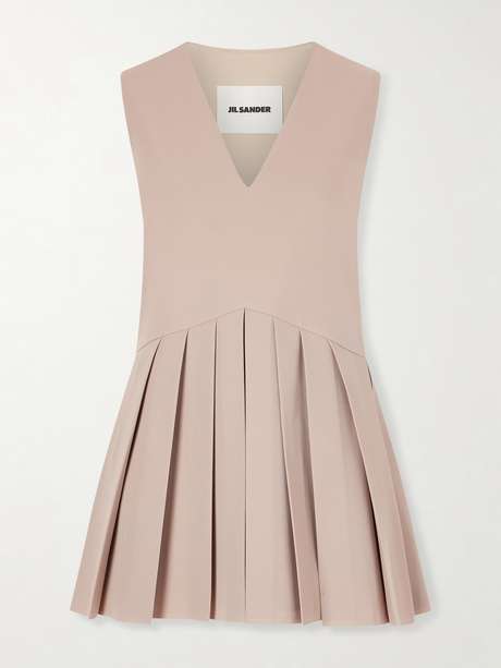 Jil Sander is celebrated for its consistently clean and modern aesthetic. This A-line top is made from wool with a deep V-neck and pleated hem. Wear yours with tailored pants and point-toe mules.
