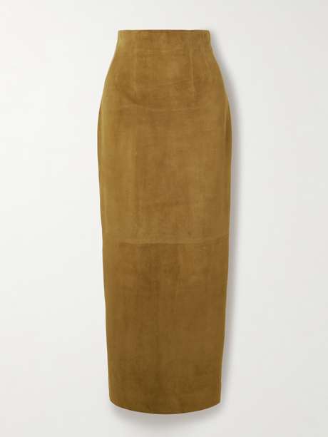 KHAITE's 'Loxley' skirt feels so refined thanks to its minimal column silhouette. This suede version has a darted waist and falls to an ankle-grazing hem that's split along the back. The smoothing satin-twill lining stops it from clinging.