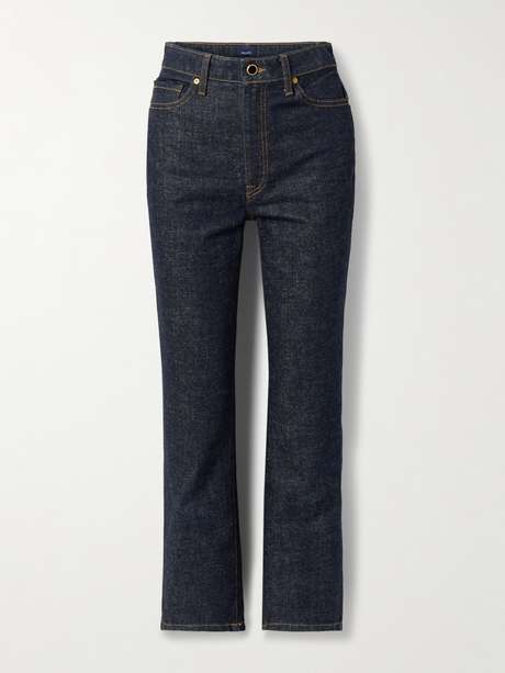 From pocket placement to the color of the topstitching, each detail of KHAITE's jeans is carefully considered. This dark-blue 'Abigail' pair has a high waist topped with the signature enameled button and straight legs cropped just above the ankles. Wear yours with everything from cardigans to crisp shirting.