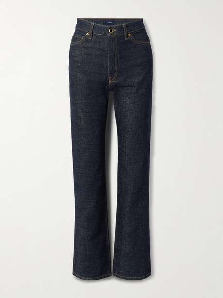 KHAITE's effortless approach is consistent with every design, including the label's denim. These 'Danielle' jeans have a high-rise waistband that makes the straight legs look even sleeker. The contrasting topstitching emphasizes the classic five-pocket construction.