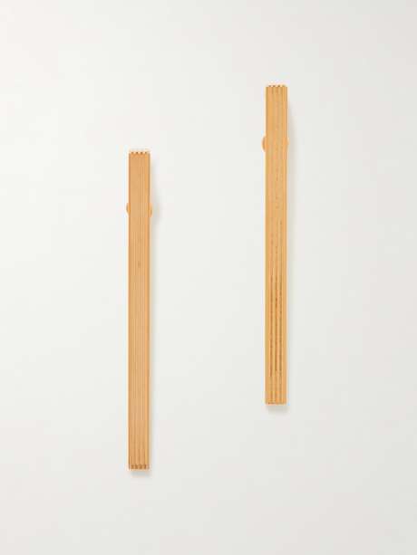 KHAITE's 'Empire' earrings are the perfect finishing touch to evening looks. They're cast from glossy gold-plated brass in a sleek, vertical shape that's etched to give them texture and dimension.