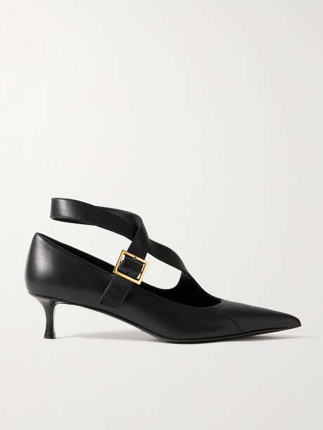 KHAITE's 'Sloan' pumps have a single strap that wraps around your ankle, framing your foot prettily. They're made from smooth leather and have sharp pointed toes and 45mm kitten heels.