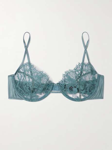 - Teal organic cotton-lace and stretch-silk satin