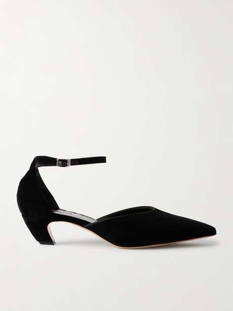 Le Monde Beryl's 'Victoria' pumps have curved kitten heels that give a distinctive, modern edge to the otherwise classic style. They’ve been made in Italy from plush black velvet with pointed toes and slim ankle straps to keep them in place.