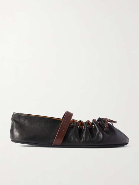 Ballet flats are going nowhere. Marni's 'Dancer' pair is made from soft leather and threaded with contrasting bows. Wear them with everything.