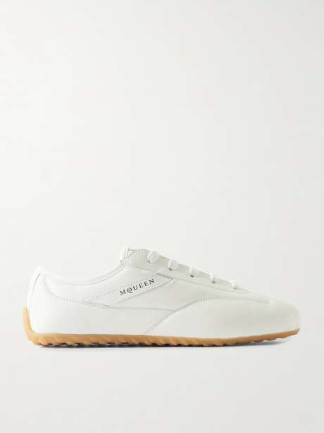 McQueen’s sneakers are crafted in Italy from panels of leather detailed with intricate topstitching. Contrasting stripes along the sides enhance the retro-inspired feel.