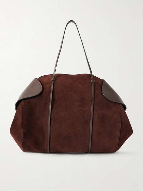 NEOUS' 'Berenices' shoulder bag is paneled from leather and suede for the perfect harmonious contrast. Handcrafted in Italy, it has two magnetic tabs to adjust the shape and capacity and a spacious interior that will fit your water bottle, umbrella and a book.