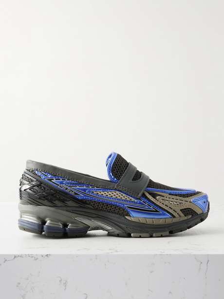 New Balance's sneakers reinvent the classic '1906' silhouette with a slip-on design. They're crafted from leather and mesh, trimmed with durable rubber and feature classic penny slots and chunky rubber soles with ABZORB cushioning.