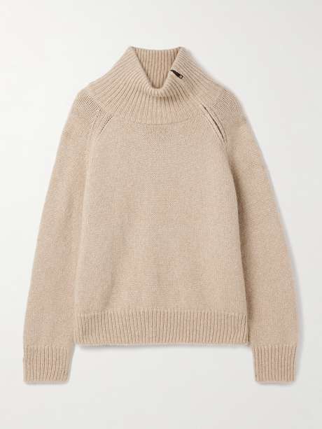 Nili Lotan's 'Raelynn' sweater is designed with a zipper along the chunky turtleneck to adjust the shape and reveal a peek of skin underneath. It's made from soft, insulating cashmere and has a relaxed fit defined by ribbed trims. Wear yours with everything, from jeans to a midi skirt.
