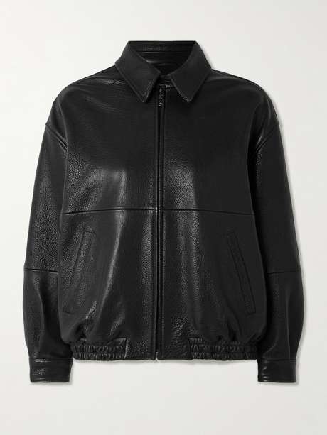 A refined reinterpretation of classic aviation style, Nour Hammour's 'Doran' bomber jacket is expertly cut from buttery full-grain leather. Defined by enveloping rounded shoulders, it features an elasticated waistband and a buttoned throat latch.