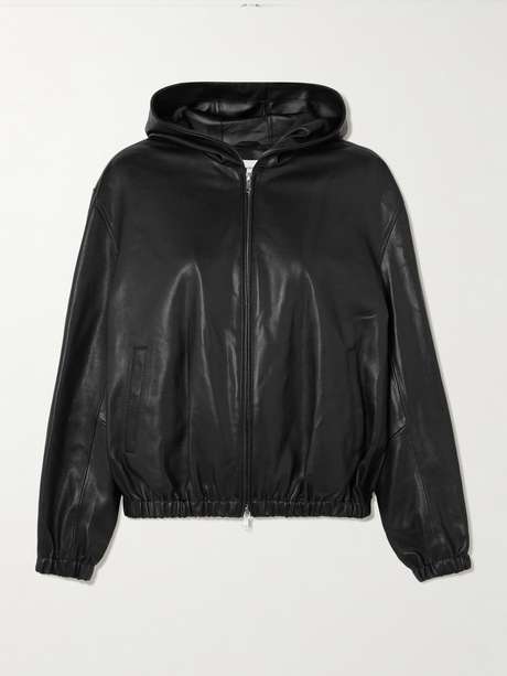 EXCLUSIVE AT NET-A-PORTER. Nour Hammour's 'Leo' jacket reimagines the classic hoodie through a refined lens. Made from supple leather with relaxed proportions, it's finished with a drawstring hood and zip front for an easy, off-duty feel. The elasticated hem adds subtle structure – layer yours over straight-leg jeans or tailored pants.