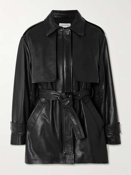 NOUR HAMMOUR Priya belted paneled leather jacket